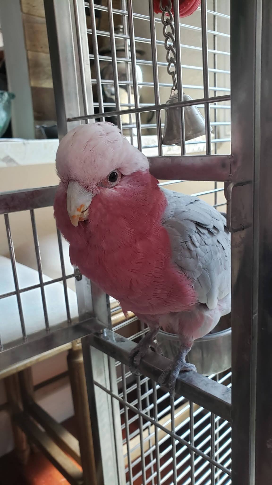 Galah Cockatoo Parrot are active birds. Provide a cage of at least 24” x 36” x 24”, with perches, climbing toys, and safe spaces for exploration.