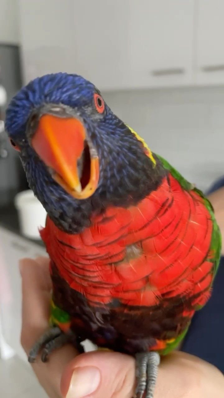 While they are not known for having large vocabularies like African Greys, many Rainbow Lorikeets develop a small but clear set of favorite sounds and words.
